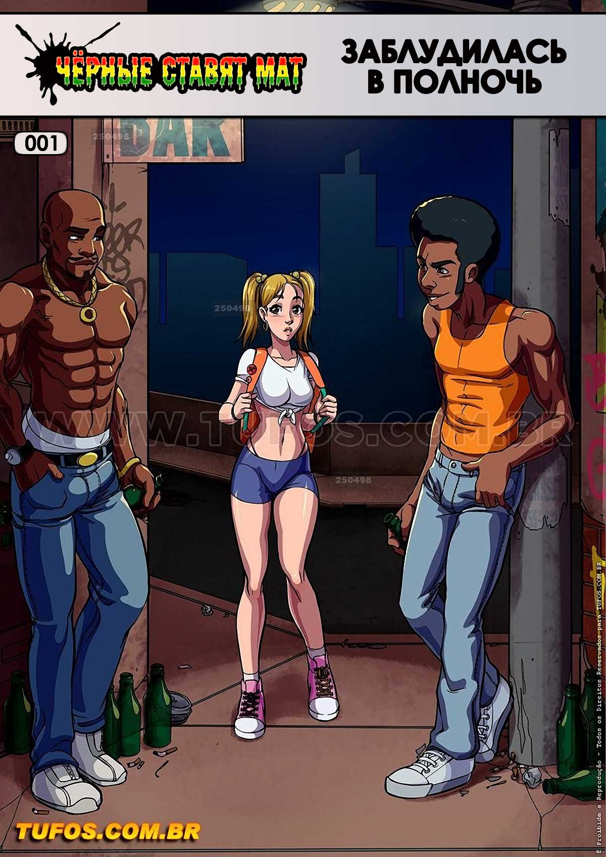 Порно комикс «Чёрные ставят мат» это новый комикс от Tufos. И так, пятница, 11:30 вечера, толпа студентов шляется по городу и радуется, что впереди два выходных дня. Белая студентка пришла на встречу со своим парнем, а он не явился. У неё были большие планы на этот вечер, а тут такой облом! И вдобавок ко всему у неё в телефоне села батарейка, и она даже такси не может вызвать, и вынуждена отправляться домой пешком по очень опасным районам города…